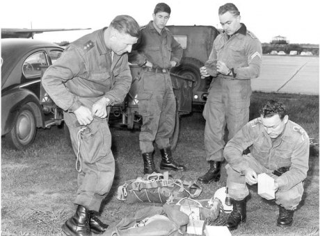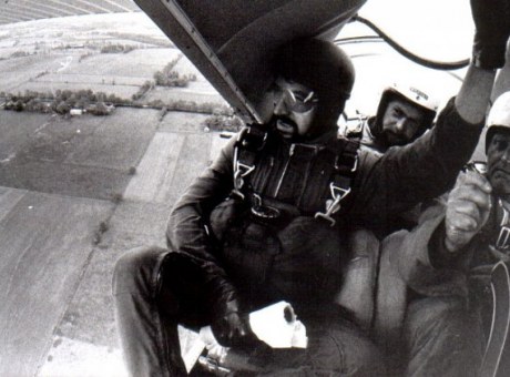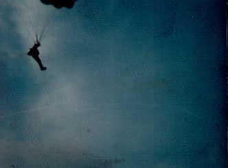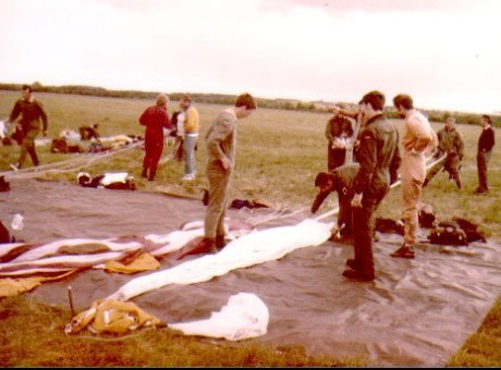 Gisbert Brande mit "Kohnke-Dreieck"-Schirm (s. Vernähung d. Fallschirmbahnen)
